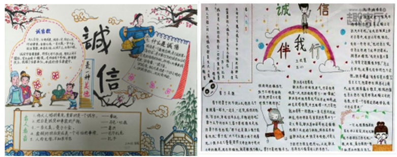 再次,学校开展了“诚信感恩”手抄报评比活动,提高学生对诚实守信规范的认识,充分培养学生的自主性、自觉性,教育和引导学生进一步增强诚实守信的思想意识,形成人人讲诚实、守承诺、做诚实守信事、当诚实守信人的良好风尚,让诚实守信之花香飘校园。